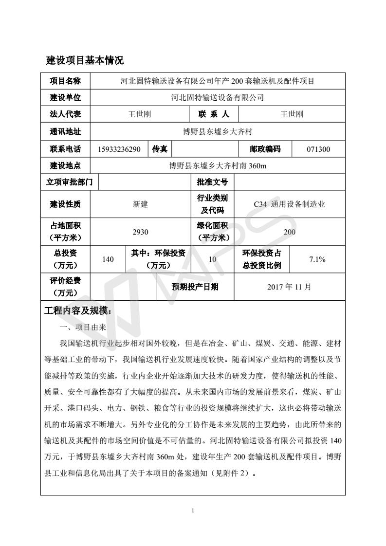 河北固特輸送設(shè)備有限公司建設(shè)項目環(huán)境影響報告表