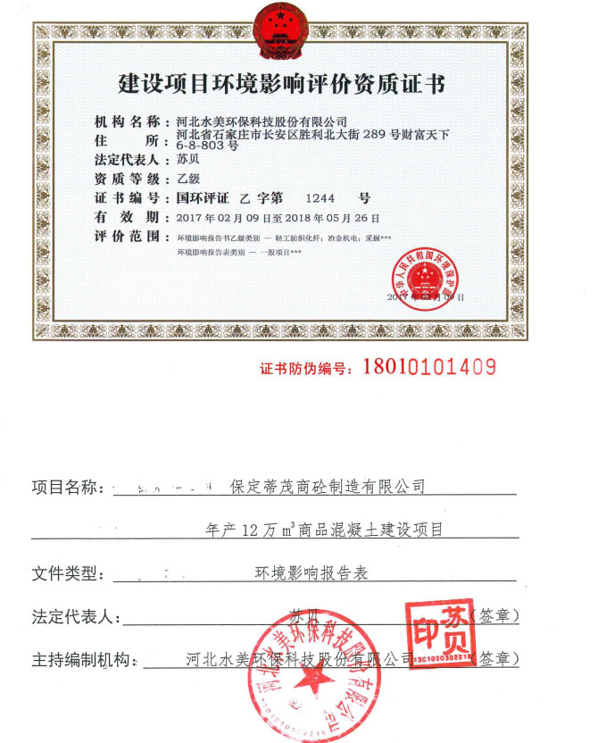 保定蒂茂商砼制造有限公司環(huán)境影響報(bào)告